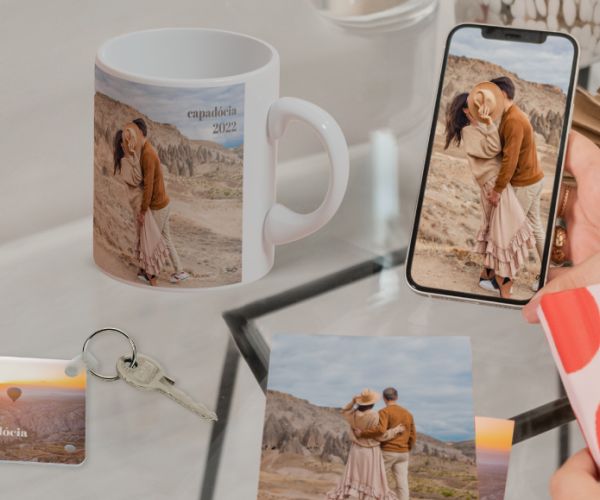 Uma opção divertida de partilhar momentos especiais e oferecer um presente único e digno dessa pessoa é imprimir as tuas fotos preferidas e emoldurá-las ou, então, personalizar um calendário, uma caneca, um caderno, uma camisola ou outro tipo de objeto.